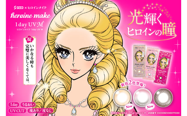 ヒロインメイクならではの虹彩デザインは、少女漫画のお姫様をイメージし、星とパールをあしらった繊細なデザイン。装用後、レンズ模様は瞳の色に馴染むため、とても自然です。